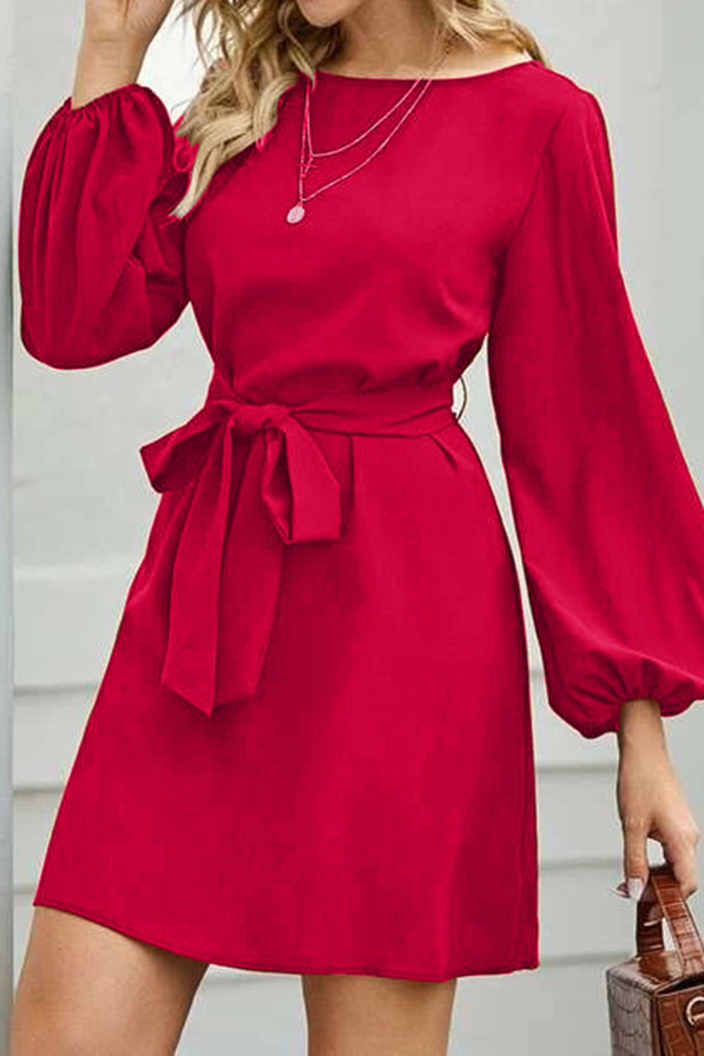 Tied Boat Neck Balloon Sleeve Mini Dress