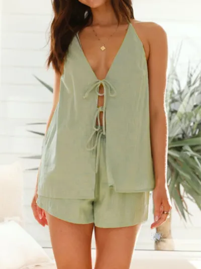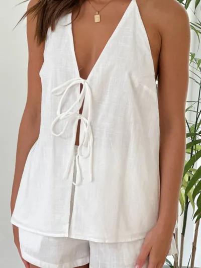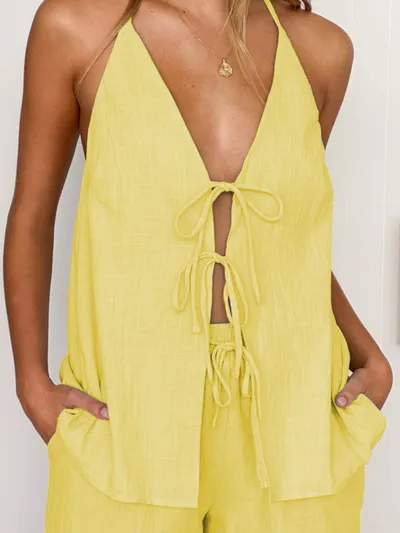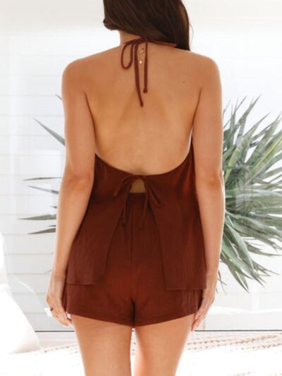 Tied Front Halter Neck Top and Shorts Set