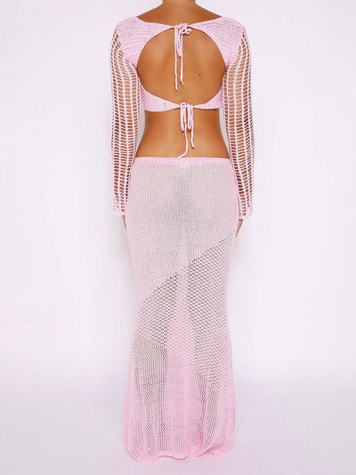 Tied Long Sleeve Top and Skirt Cover Up Set