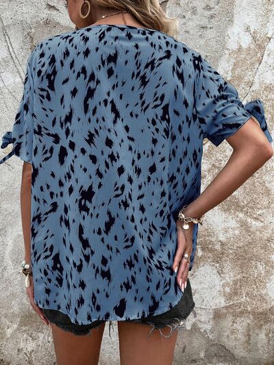 Tied Printed Boat Neck Blouse