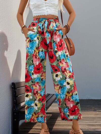 Tied Printed Wide Leg Pants