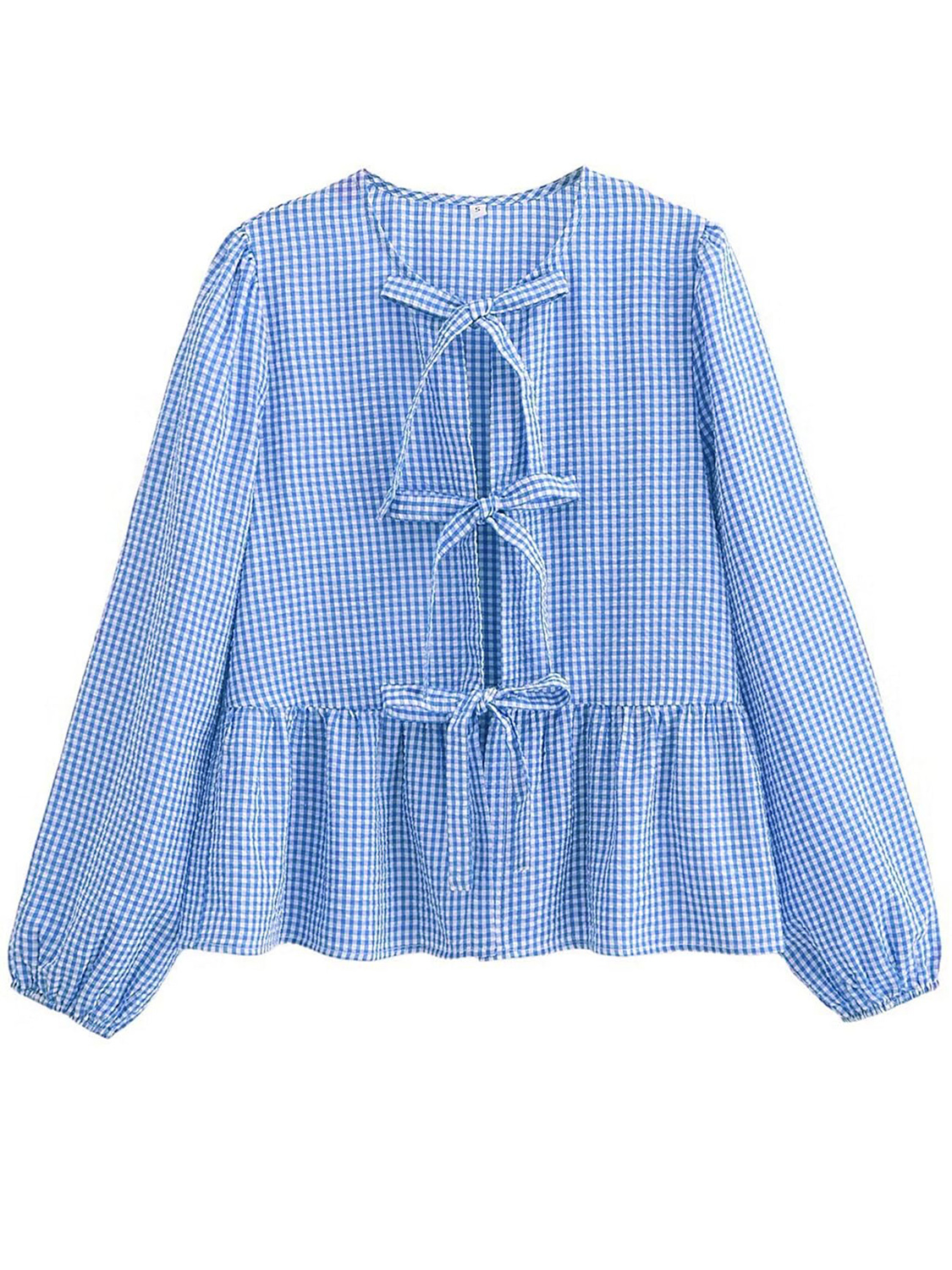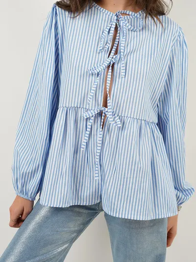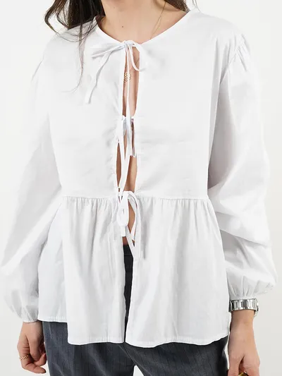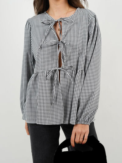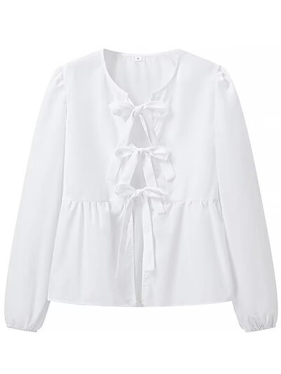Tied Round Neck Long Sleeve Blouse