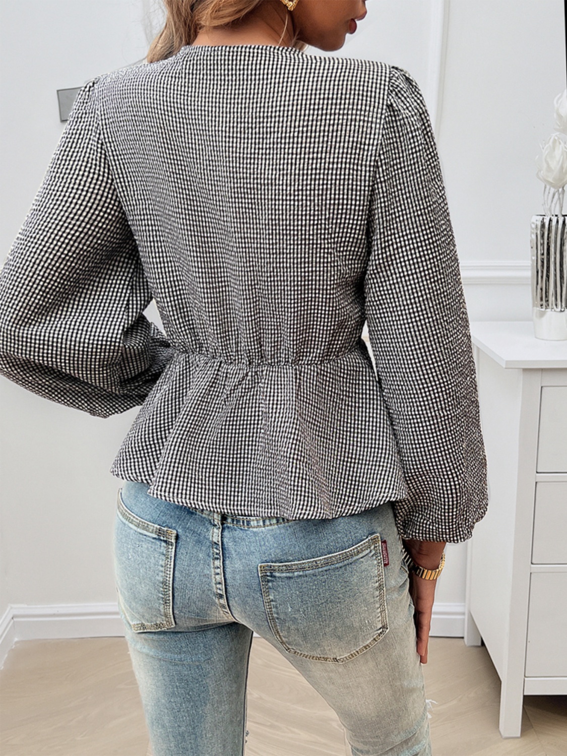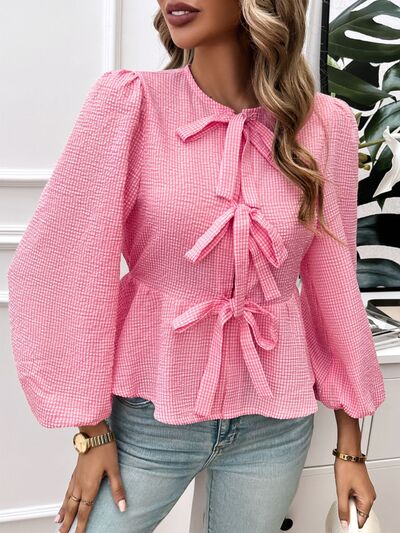 Tied Round Neck Long Sleeve Blouse