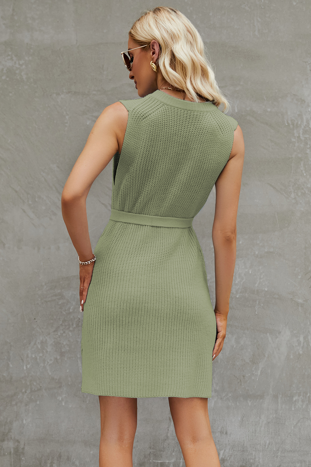 Tied Round Neck Sleeveless Sweater Dress