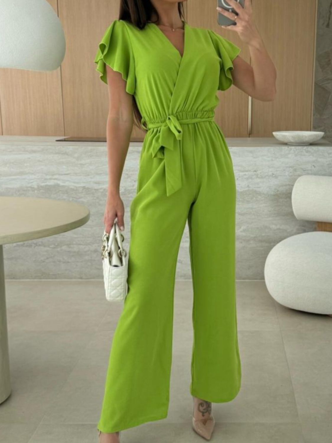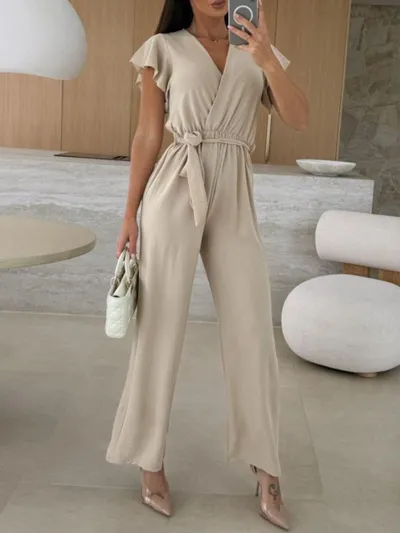 Tied Ruffled Wide Leg Jumpsuit