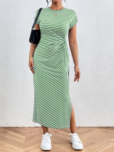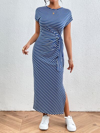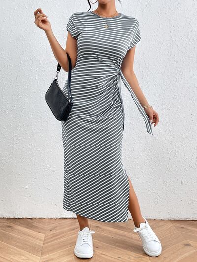 Tied Striped Round Neck Short Sleeve Tee Dress