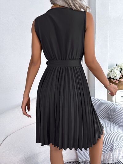 Tied Surplice Sleeveless Pleated Dress