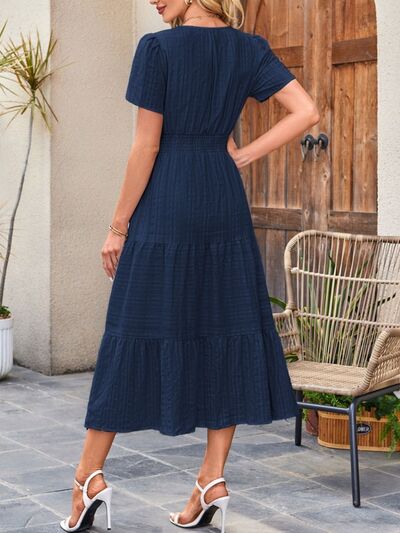 Tiered Notched Short Sleeve Dress