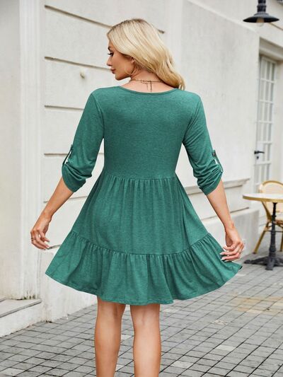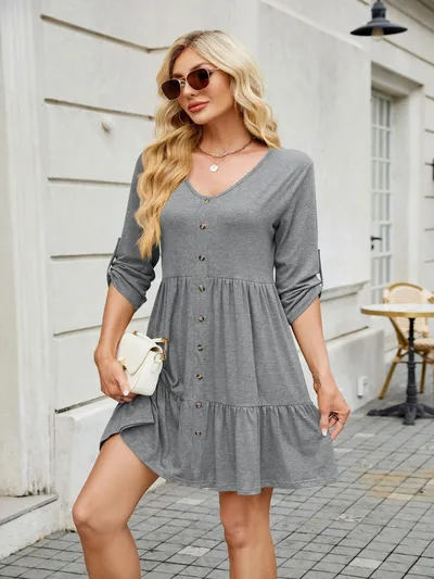 Tiered Ruched V-Neck Mini Dress