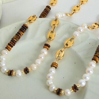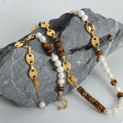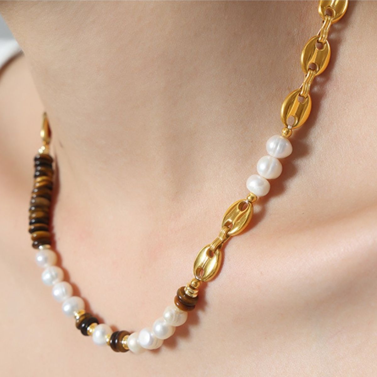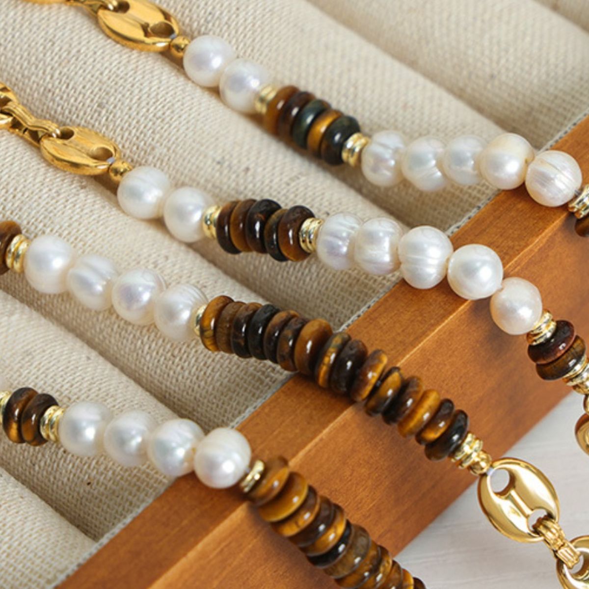 Tiger's Eye Freshwater Pearl 18K Gold-Plated Bead Necklace