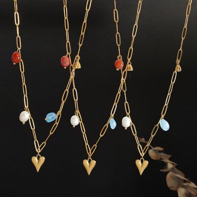 - Material: Freshwater pearl, Natural stone, Titanium steel, Gold-plated