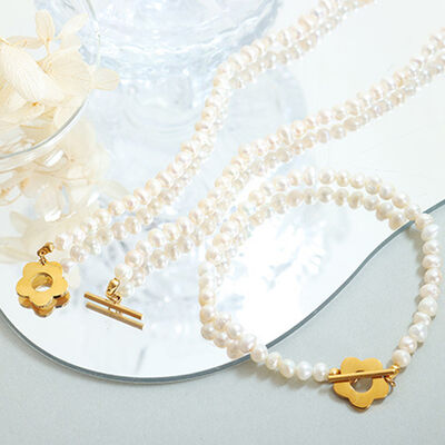 - Material: Freshwater pearl, Titanium steel, Gold-plated