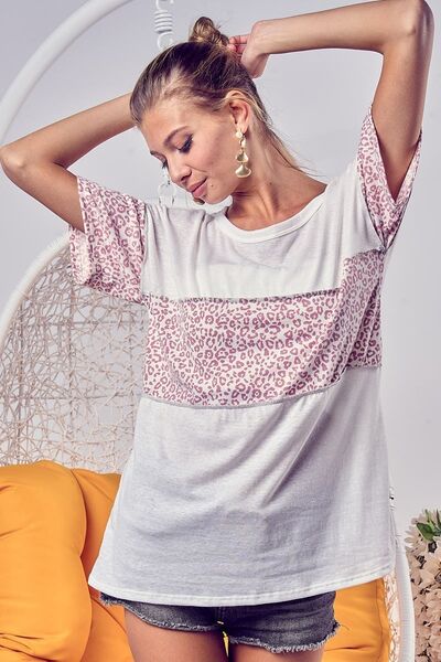 Triblend Knit with Leopard Block Out Stitching