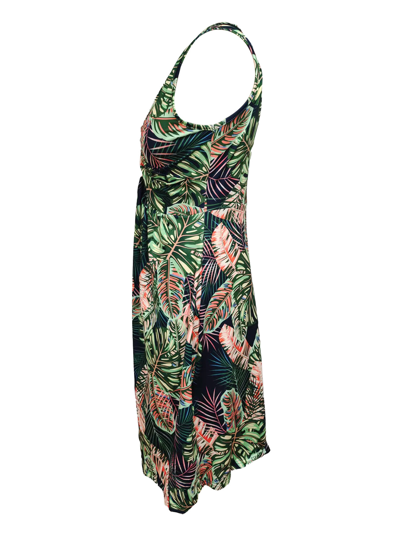 Tropical Print V-Neck Sleeveless Summer Dress