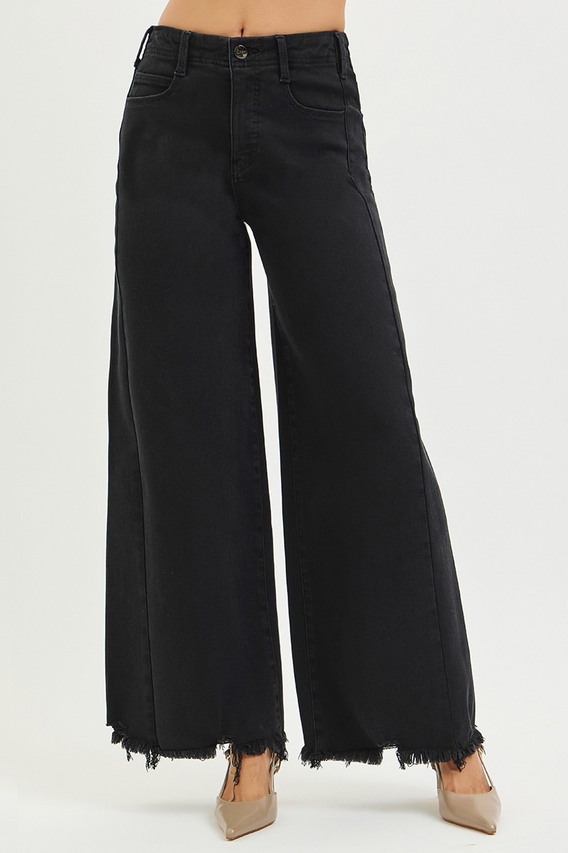 Tummy Control High Rise Palazzo Leg Frayed Hem Jeans