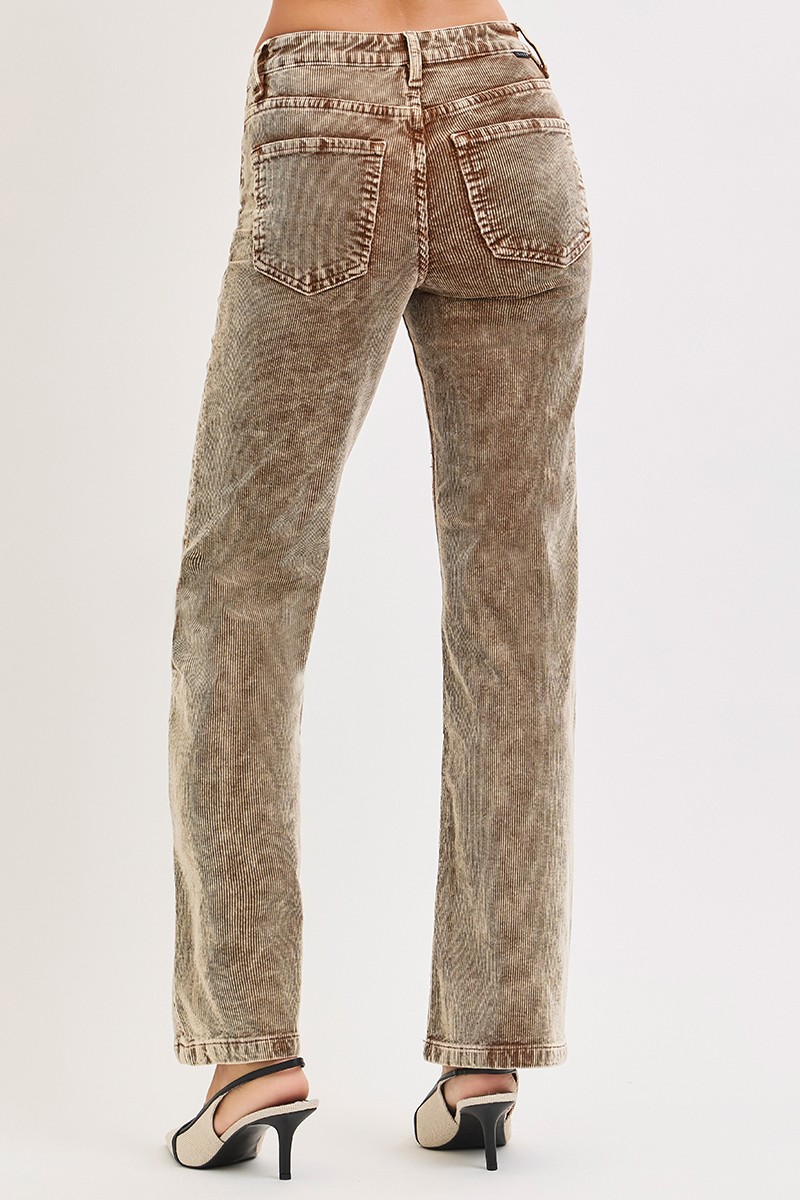 Tummy Control Mid Rise Straight Leg Corduroy Pants