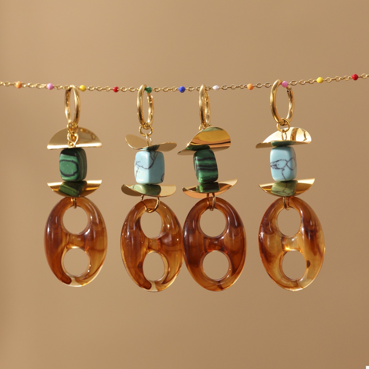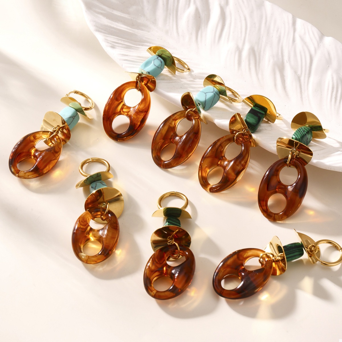 - Material:18K Gold-Plated,Resin,Stainless Steel,Turquoise