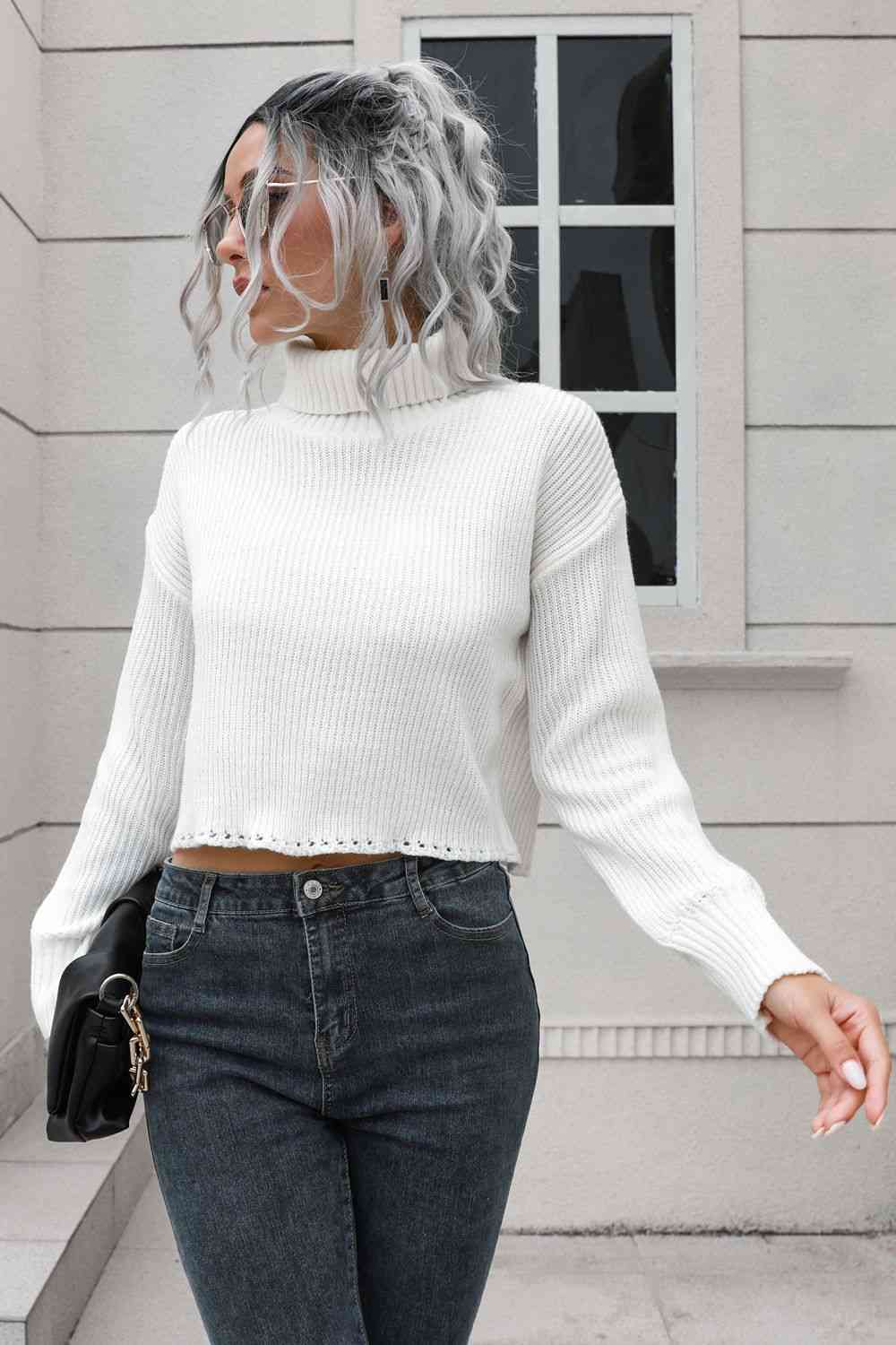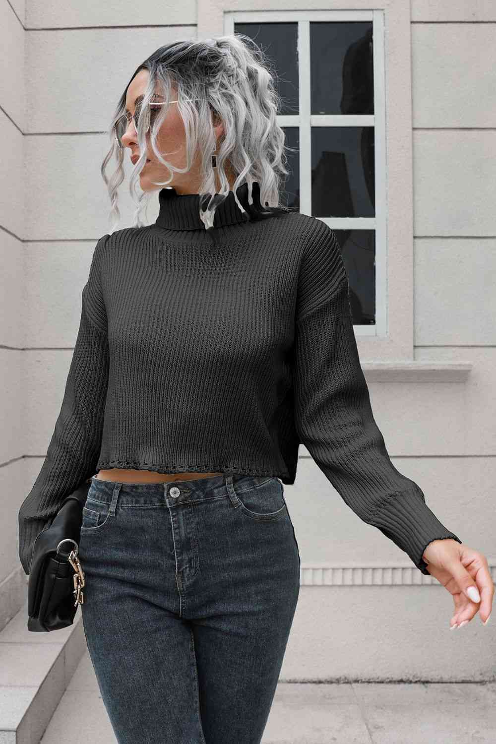 Turtleneck Dropped Shoulder Sweater