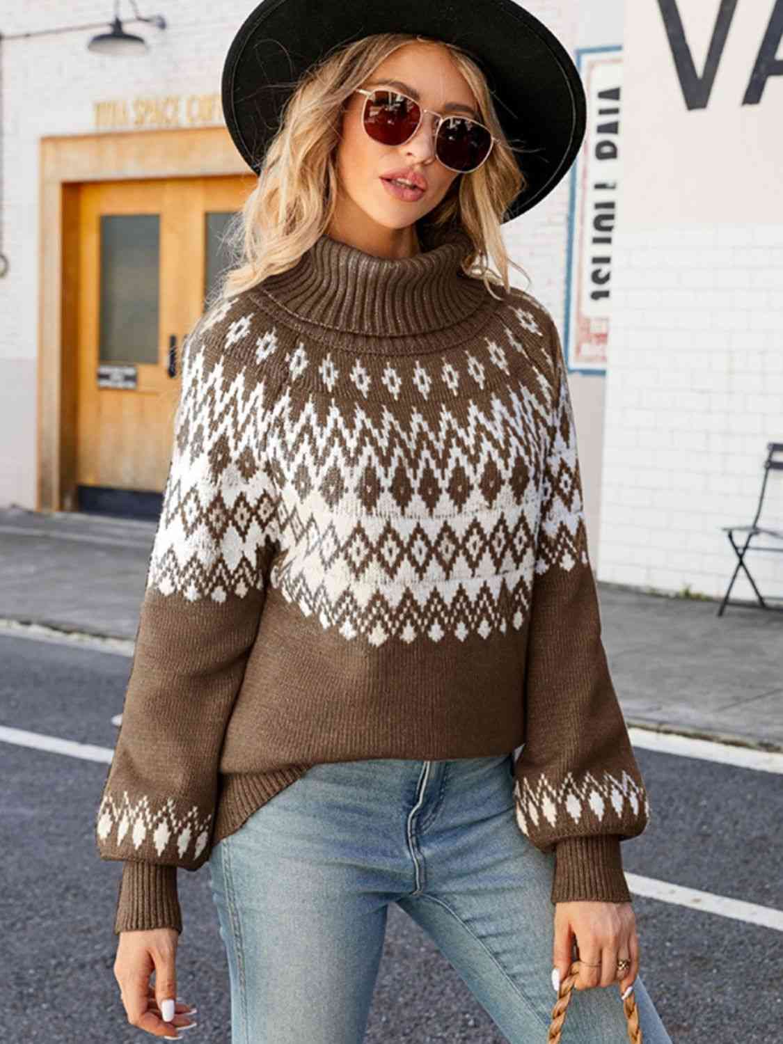 Turtleneck Lantern Sleeve Sweater