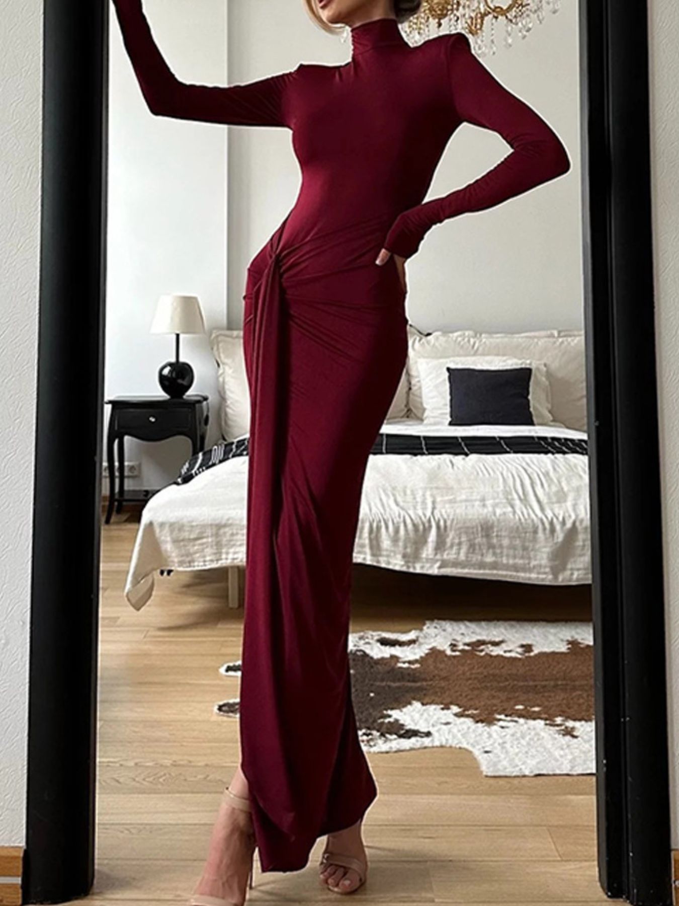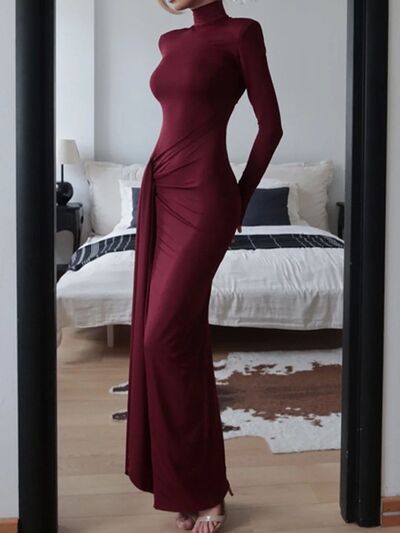 Turtleneck Long Sleeve Slit Maxi Dress