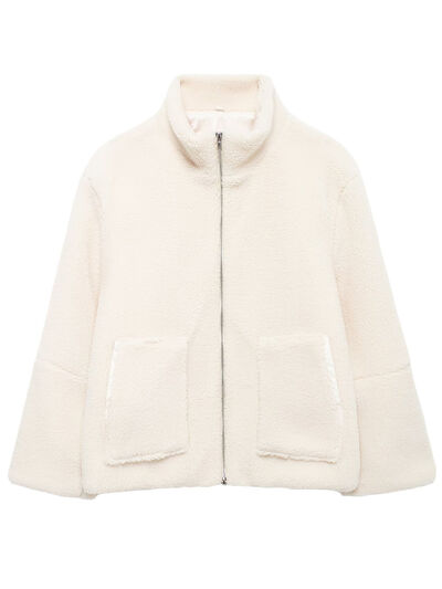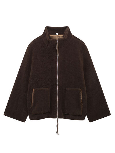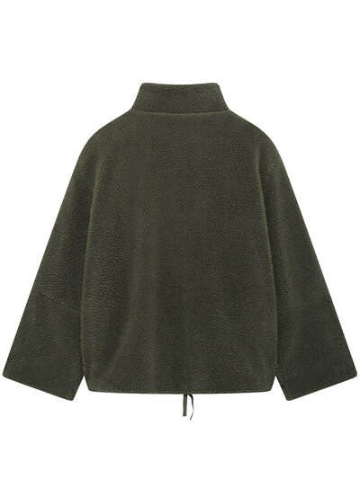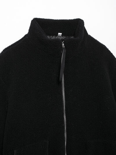 Turtleneck Zip Up Long Sleeve Plush Jacket