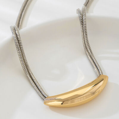 Two-Tone Alloy Curved Pendant Snake Chain Necklace