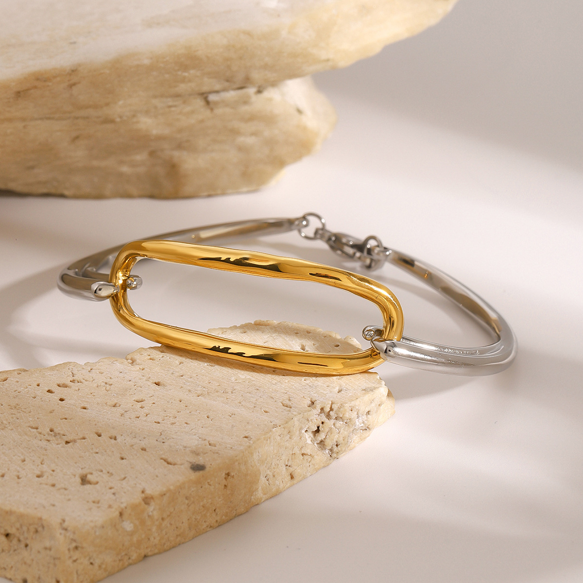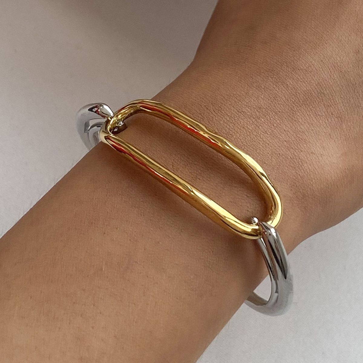 Two-Tone Geometric Link Bracelet