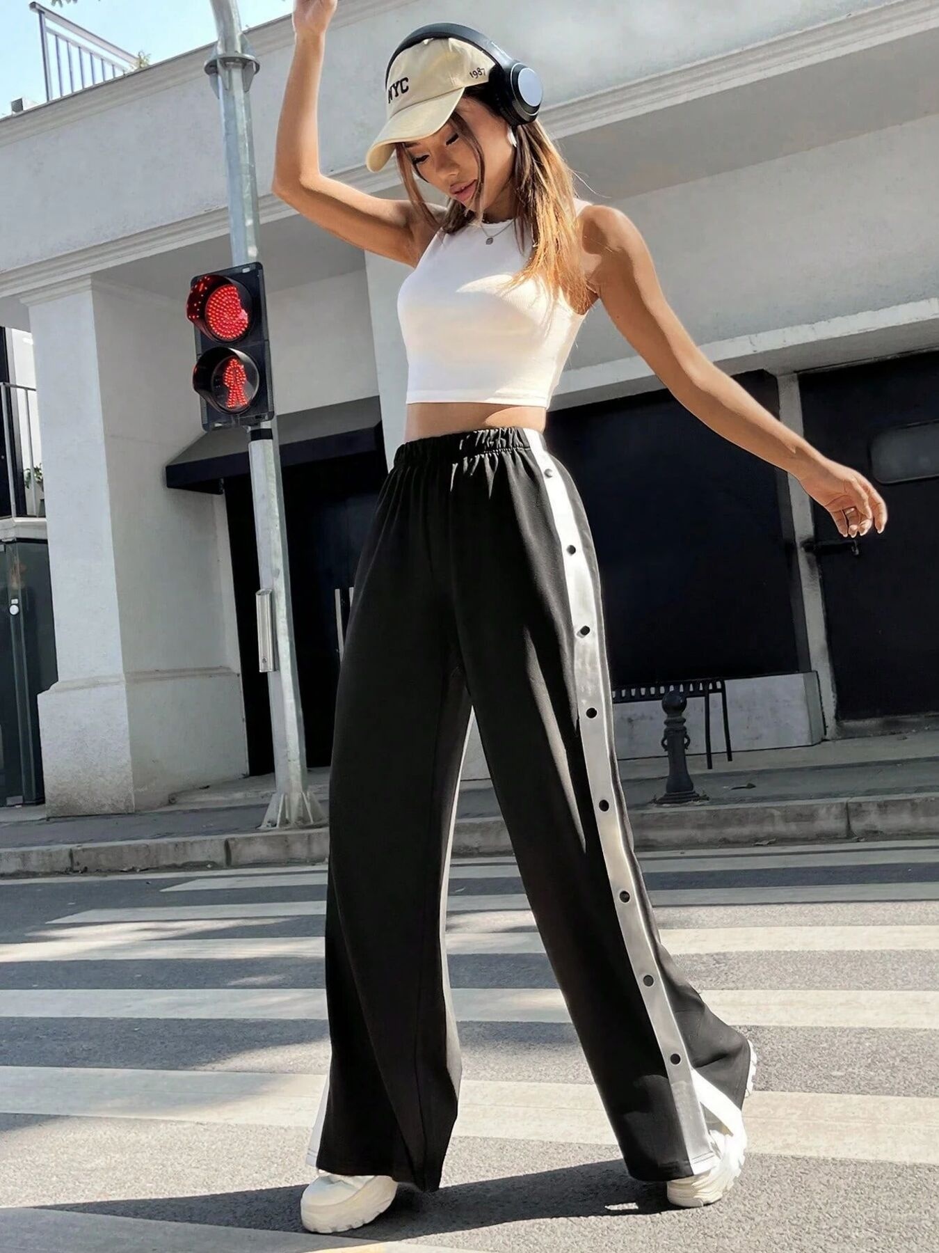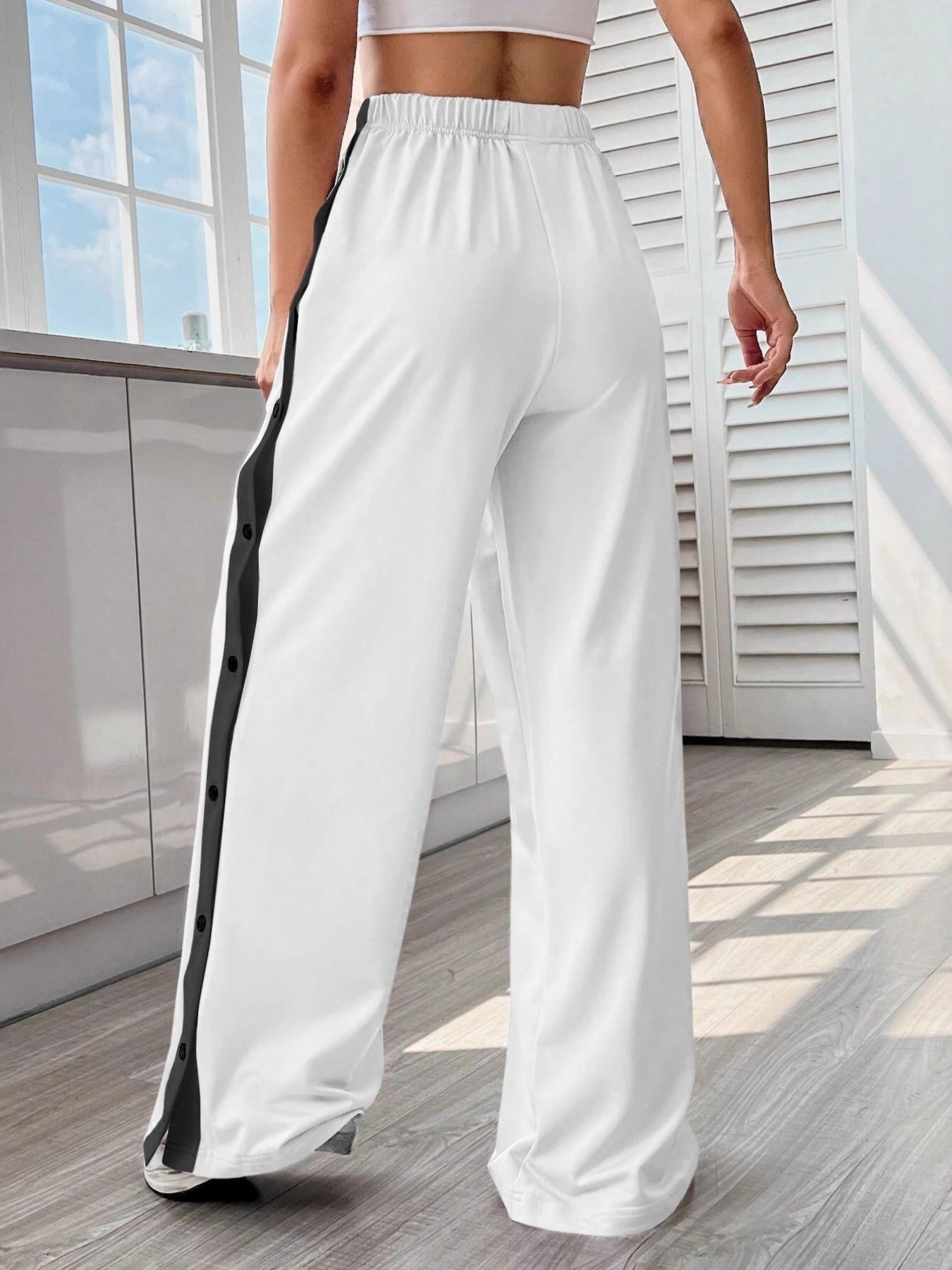 Two-Tone Side Snap Wide Leg Pants