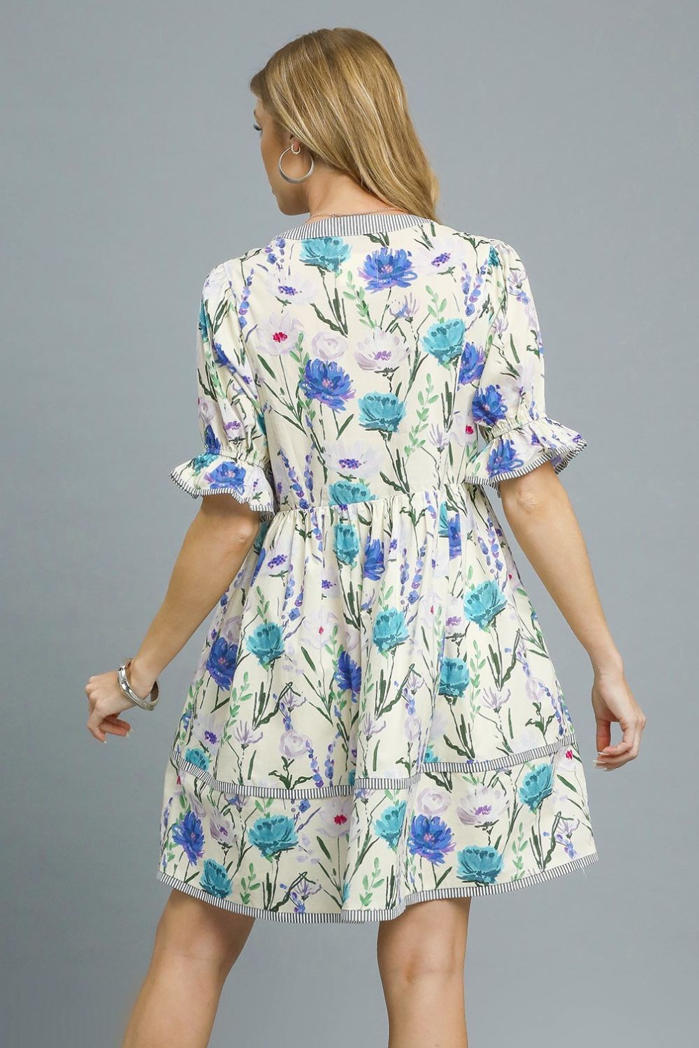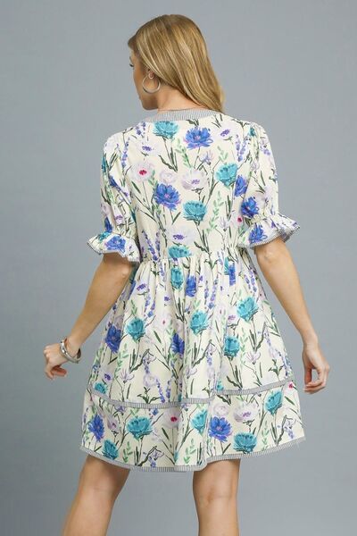Umgee BabyDoll Floral Striped Hem Mini Dress