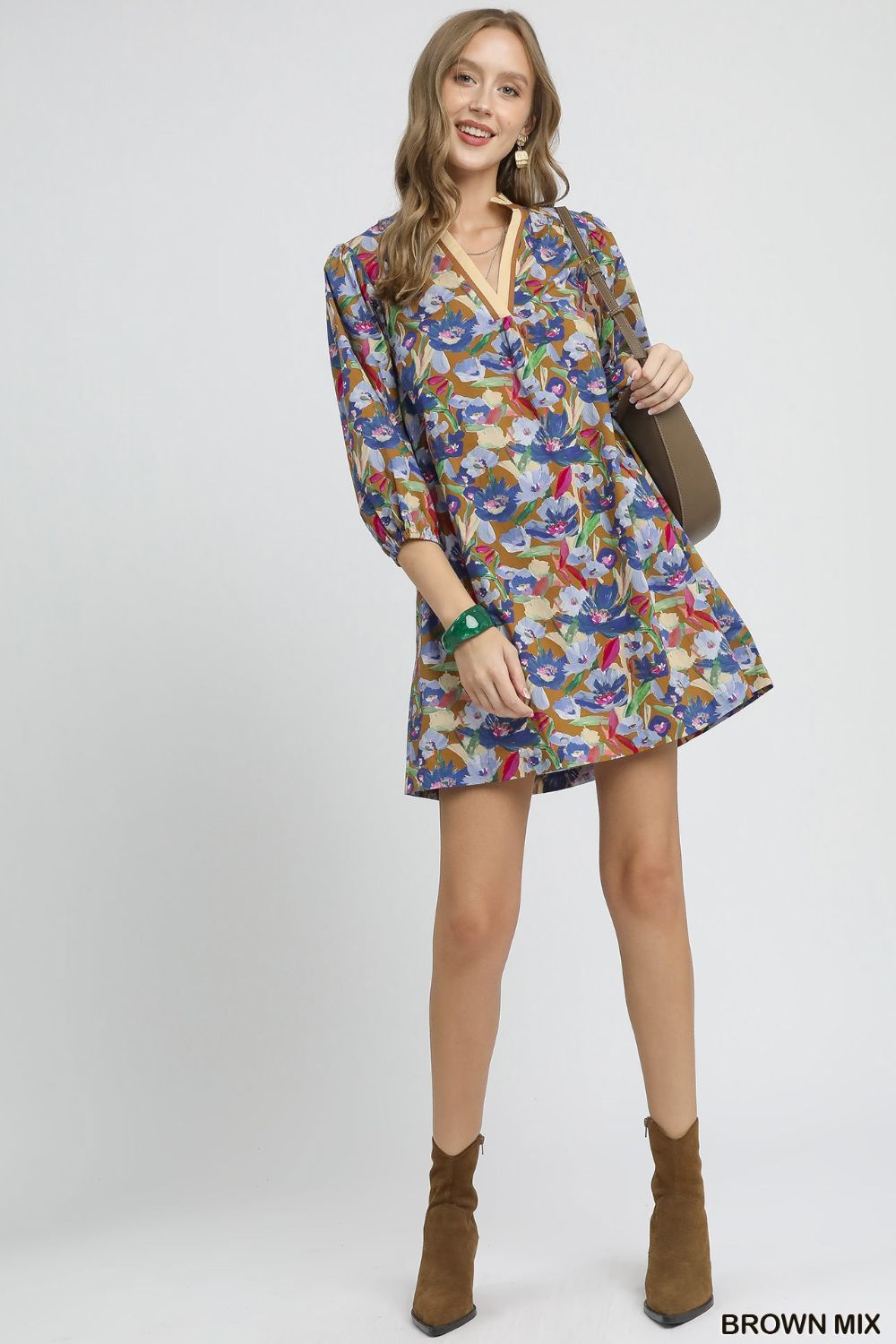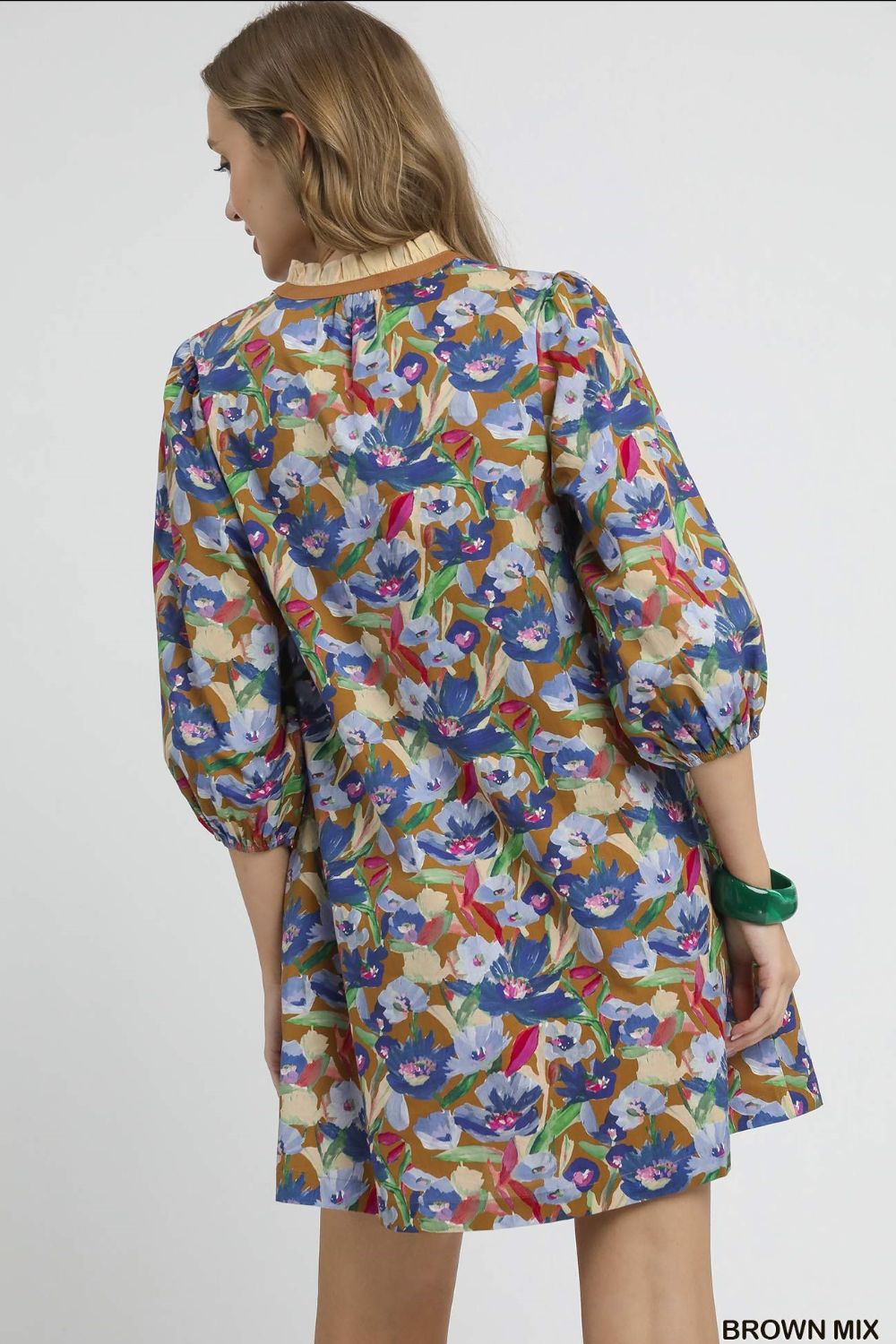 Umgee Boho Floral Balloon Sleeve Mini Dress