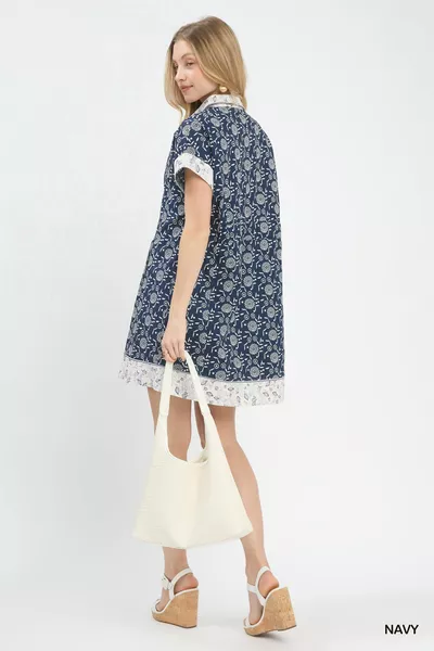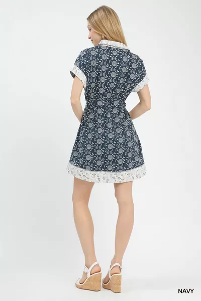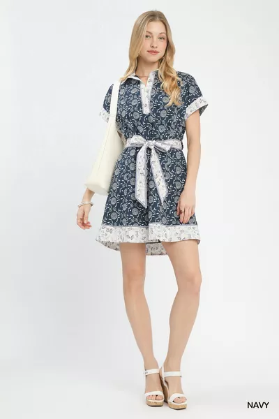 Umgee Border Print Belted Shirt Dress