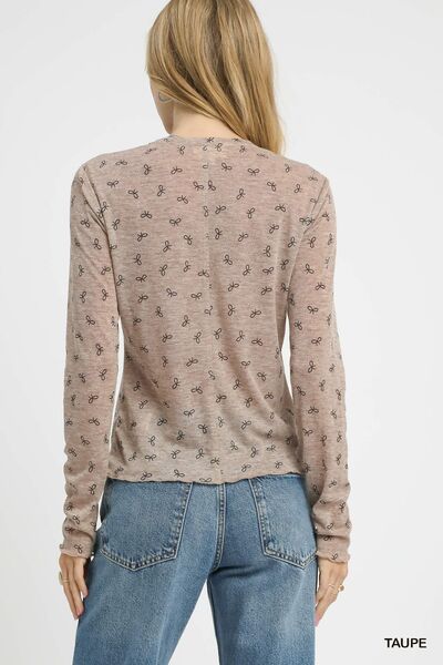 Umgee Bow Print Lightweight Knit Top