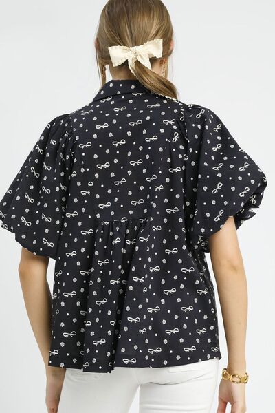 Umgee Bow Print Puff Sleeve Blouse