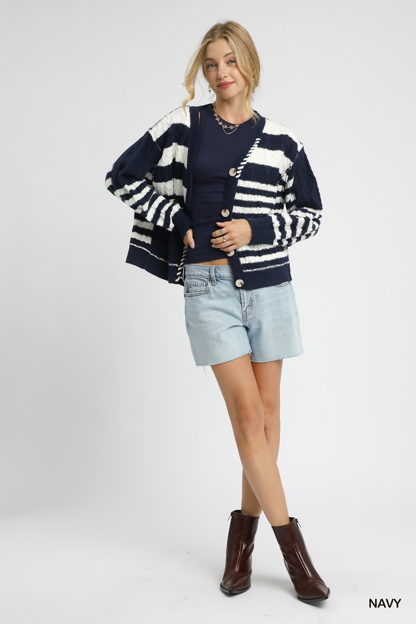 Umgee Cable-Knit Stripe Button-Up Cardigan