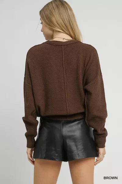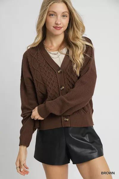 Umgee Chunky Cable Knit V-Neck Button-Up Cardigan