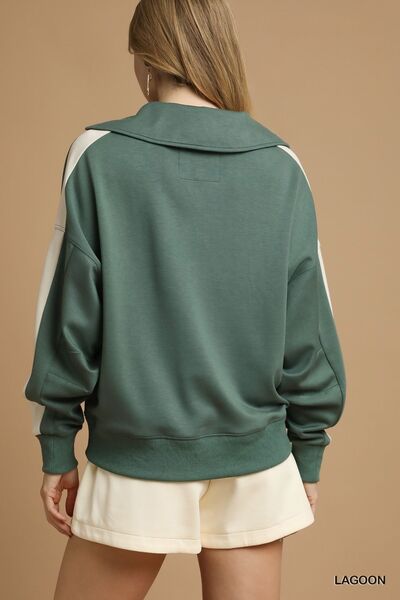 Umgee Contrast Long Sleeve Sweatshirt with Collar