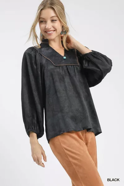 Umgee Crinkle Brocade Long Sleeve Blouse