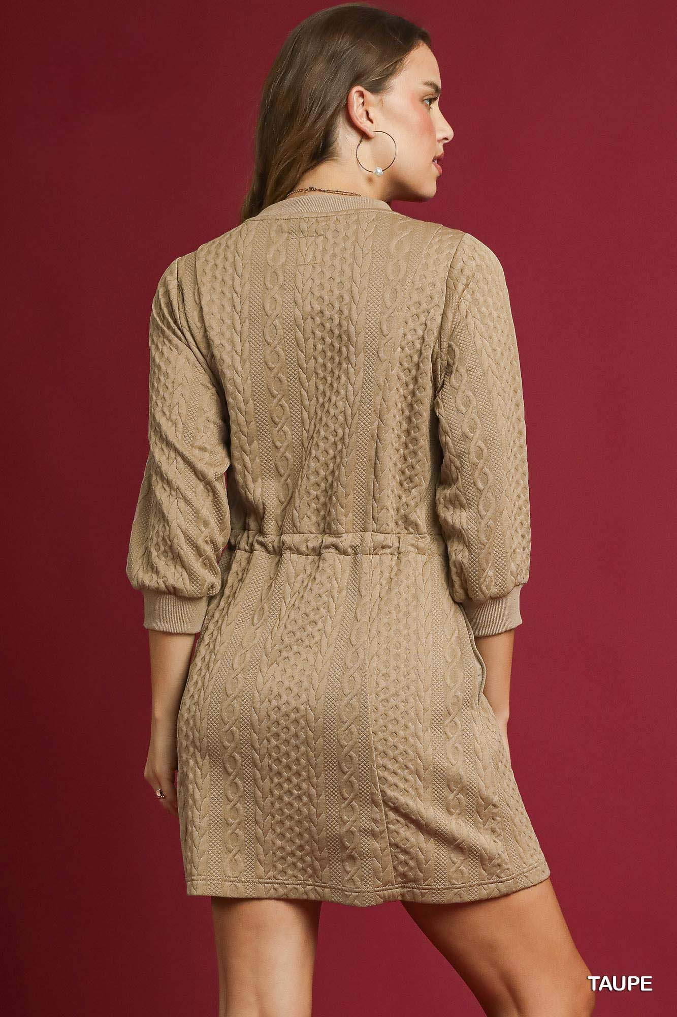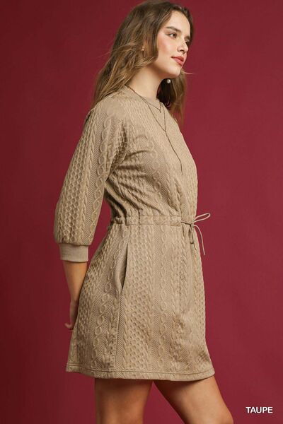 Umgee Drawstring Cable Knit Mini Dress with Pockets