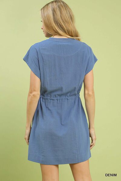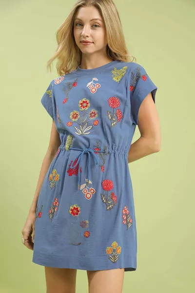 Umgee Embroidered Floral Mini Dress with Waist Tie