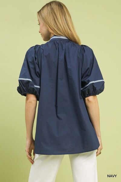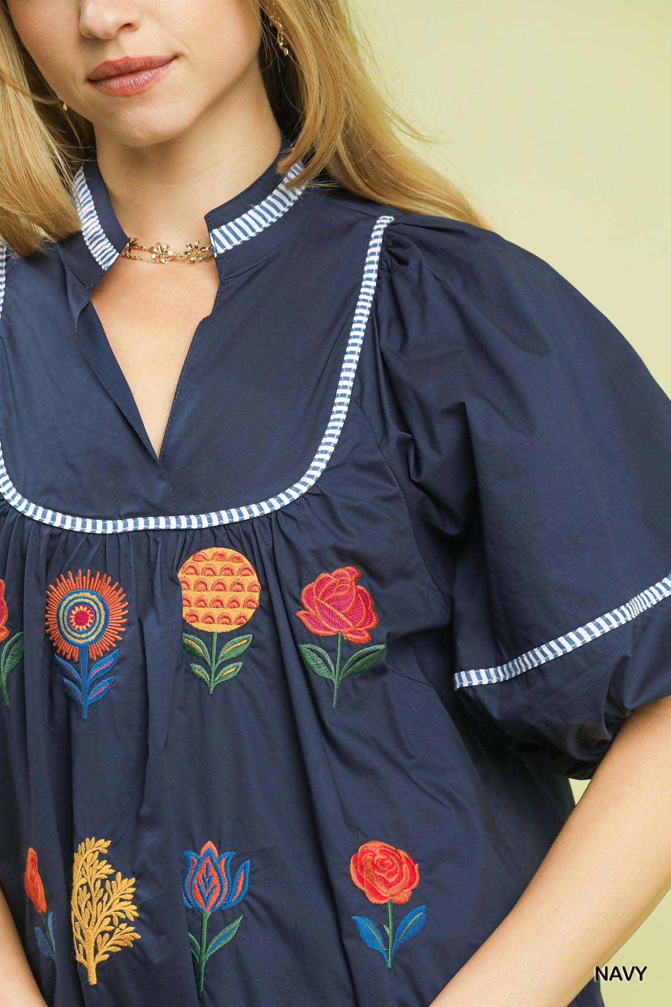 Umgee Embroidered Floral Puff Sleeve Top
