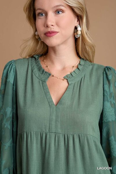 Umgee Floral Contrast Sleeve Tiered Dress