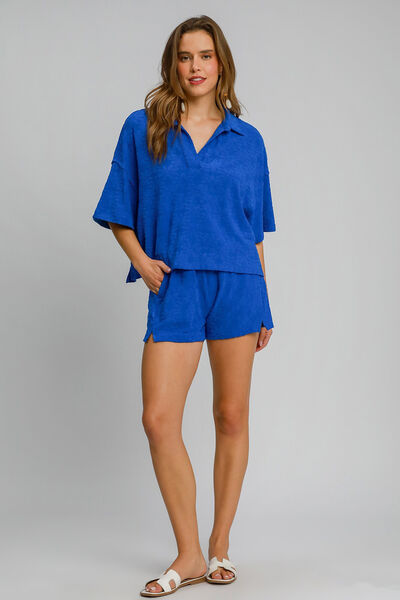 Umgee Floral Elastic Waist Jacquard Shorts with Pockets