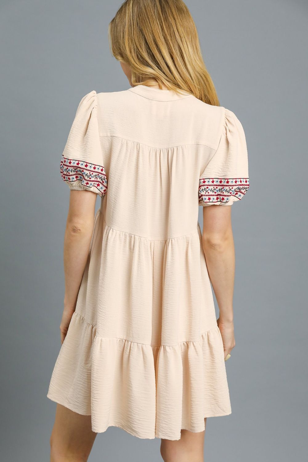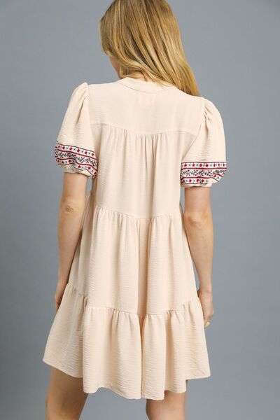 Umgee Floral Trim Puff Sleeve Mini Dress