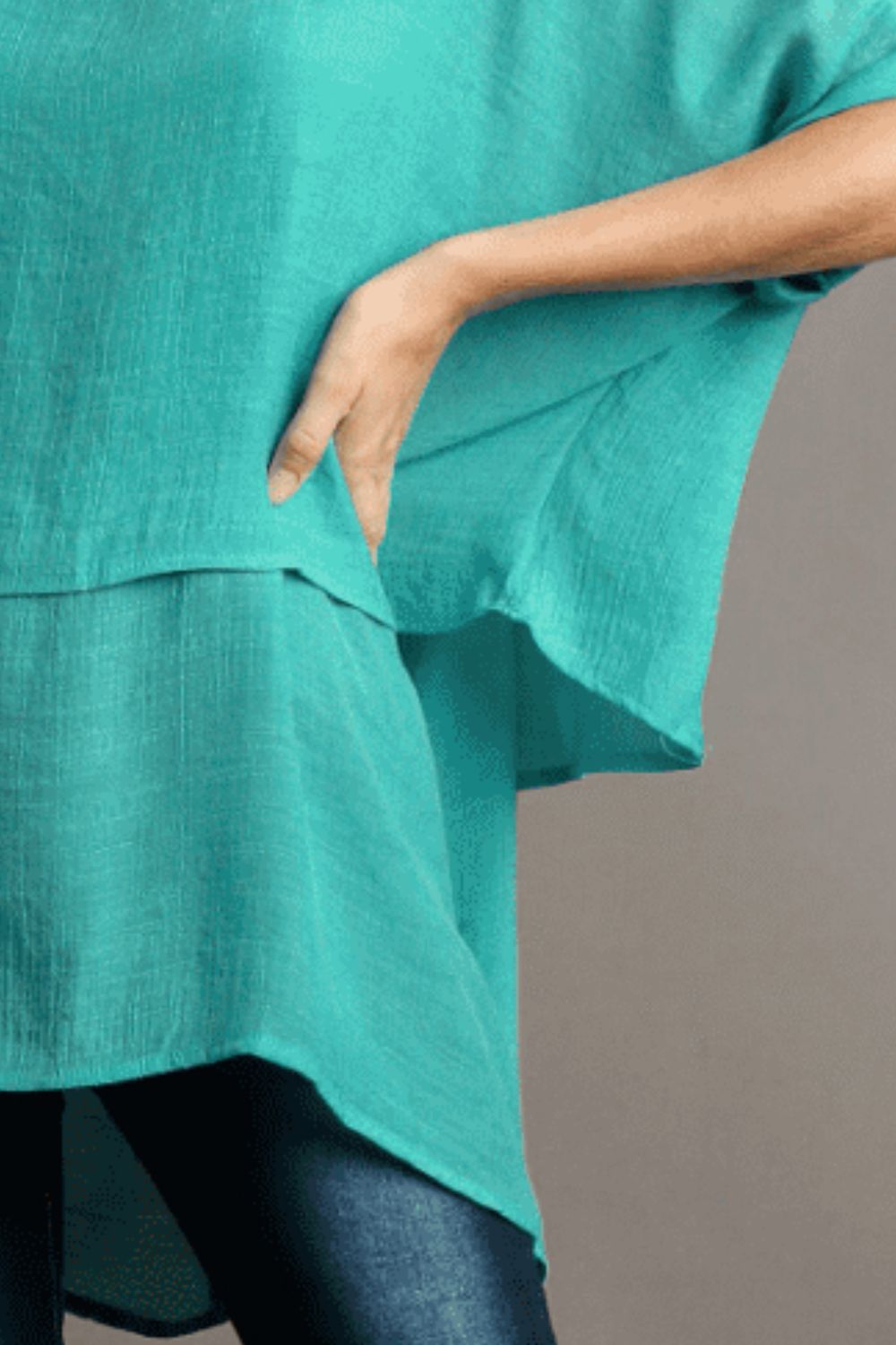 Umgee Full Size Cuffed Half Sleeve Layered Top Plus Size