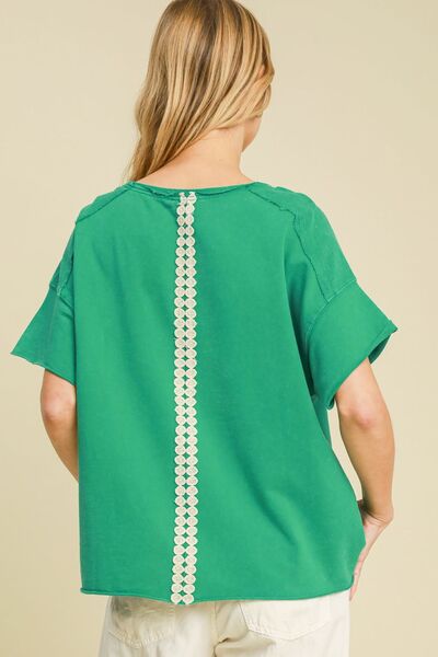 Umgee Full Size Mineral Wash T-Shirt with Lace Applique Plus Size