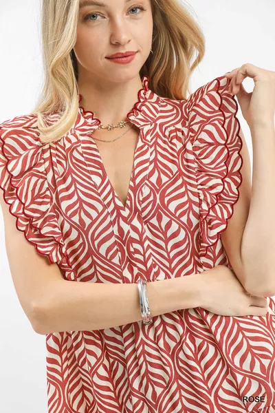 Umgee Leaf Print Tiered Midi Dress with Ruffle Detail