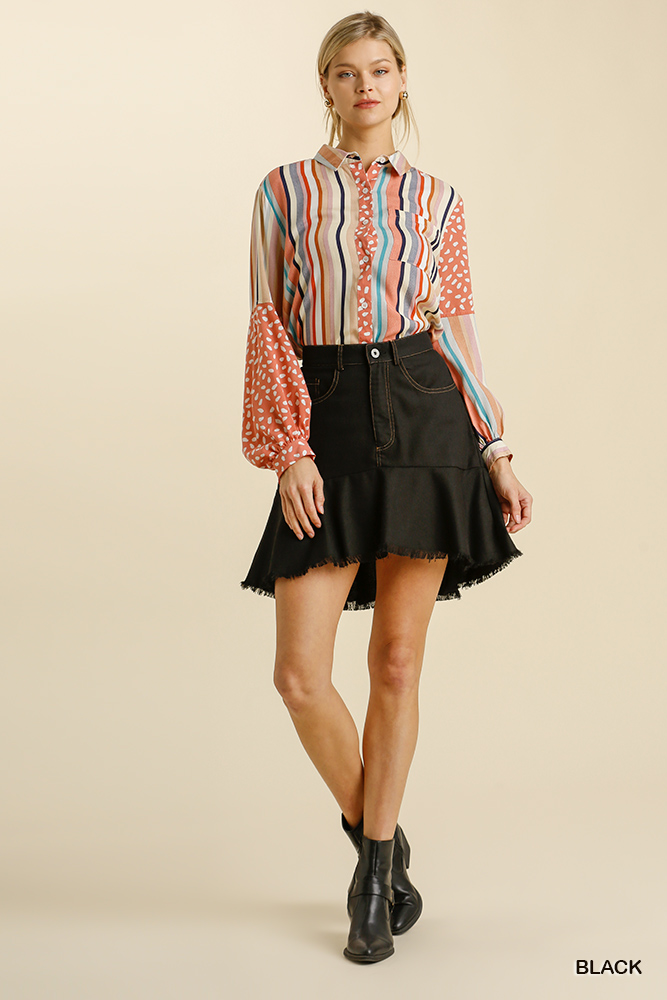 Umgee Linen Blend 5 Pockets High Low Skirt with Frayed Hem