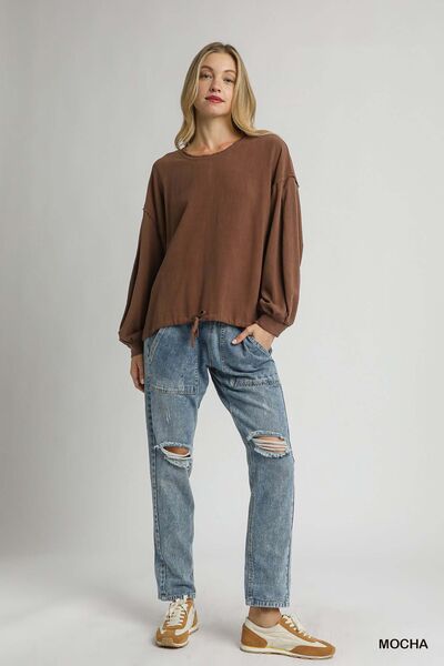 Umgee Linen Long Sleeve Top with Drawstring