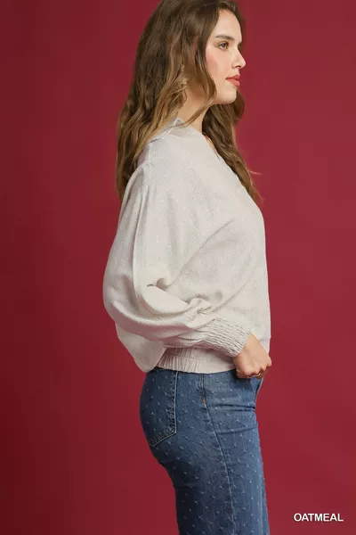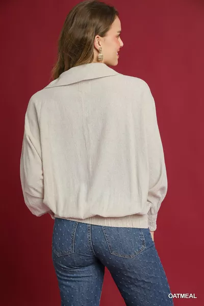Umgee Linen Long Sleeves Elastic Hem Blouse