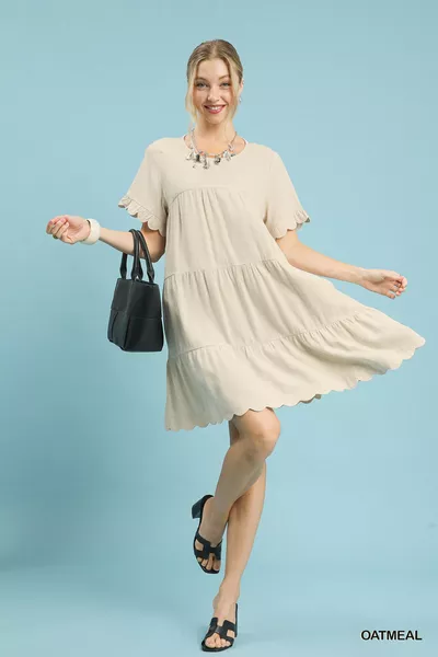 Umgee Linen Tiered Babydoll Dress with Ruffle Sleeves
